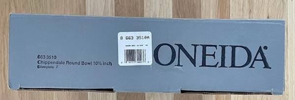 This is a beautiful silverplated round bowl. It was made in America by Oneida, is the Chippendale design and measures 10 3/8". This bowl is in the UNOPENED BOX, is BRAND NEW in original wrapping and...
