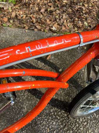 Modern Sturmey hubs were used to give this one five gears and a front brake. Disassembled to the frame and rebuilt with new bearings. Bike now has a better springer and fender. Will support an adult rider.