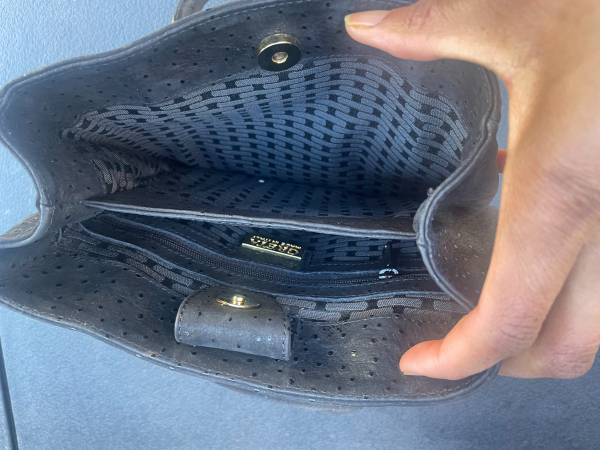 Elegant black handbag featuring gold hardware and textured design. Pickup on Northside Drive, 5 mins from Atlantic Station.