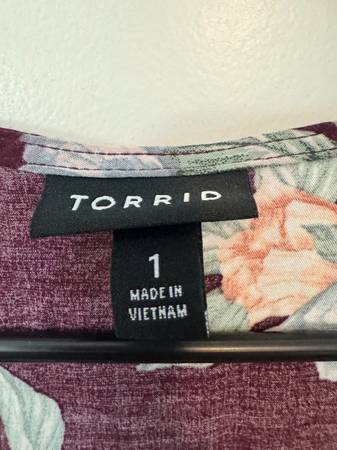Beautiful Torrid floral wrap shirt with tie waist and 3/4 sleeves. Pickup in West Midtown on Northside Drive.