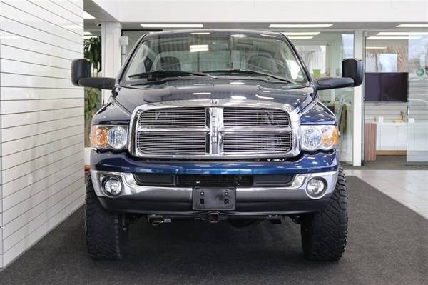 UP FOR GRABS IS A SUPER HARD TO FIND IN THIS SHAPE AND CONDITION AND SUPER LOW MILES ONE ORIGINAL OWNER SINCE NEW CLEAN TITLE AND CARFAX CERTIFIED 2003 DODGE RAM 2500 QUAD CAB SHORT BED SLT WITH TURBO 5.9L CUMMINS HIGH OUTPUT AND IMPOSSIBLE TO FIND 6-SPEED MANUAL TRANSMISSION, 4X4 LOADED WITH ALL OPTIONS, FULL LEATHER PACKAGE, POWER SEAT, TOWING MIRRORS, RUNNING BOARDS, FOG LIGHTS, 6-PASSENGER SEATING, FACTORY 2-TONE PAINT, BED LINER, TONNEAU COVER, POWER SEAT, TINTED WINDOWS AND MORE. THERE IS NO SIGNS OR RECORDS OF ANY ACCIDENTS OR DAMAGES EVER, NO MAJOR DENTS OR SCRATCHES AT ALL, NON-SMOKER PREVIOUS OWNER, LIKE NEW INTERIOR FREE OF ANY RIPS OR TEARS OR ANY BROKEN PLASTICS OR STAINS ON THE CARPET. THIS RAM WAS PURCHASED AND OWNED AND DRIVEN BY THE SAME PERSON SINCE 2003, ALL ORIGINAL BOOKS / MANUALS / HAND TAGS / WINDOW STICKER / ALL SERVICE RECORDS SINCE NEW ARE PART OF THIS SALE ALONG WITH BOTH SETS OF KEYS, HE HAD IT ALWAYS SERVICED AT DEALER WITH ALL RECORDS , ALL FLUIDS ALL BELTS ALL MAINTENANCE DONE BY DODGE DEALER, HE ALSO DID SOME GREAT UPGRADES SUCH AS AN IN BED TRANSFER FLOW AUX FUEL TANK, 5TH WHEEL PLATES, REAR LOAD LEVELING AIRBAGS, TRAIN HORNS, ON BOARD AIR COMPRESSOR WITH PLUG AND PLAY FITTINGS, BANKS EXHAUST BRAKE, TRAILER BRAKES AND MORE. WE JUST UPGRADED THE SUSPENSION WITH A NEW 3" BILSTEIN LEVELING KIT AND ALL NEW BILSTEIN 5100 SERIES SHOCKS ALL THE WAY AROUND, WE ALSO ADDED A NEW SET OF 35" NITTO RIDGE GRAPPLER 10-PLY TIRES ALL THE WAY AROUND AND UPGRADED 17" WHEELS. THIS RAM HAS NEVER BEEN DRIVEN IN MUD OR SNOW, THE UNDER CARRIAGE IS 100% RUST & CORROSION FREE, THE PAINT SHOWS AS NEW, ALWAYS GARAGED. WE JUST DID A FRESH SERVICE INCLUDING NEW SERPENTINE BELT / COOLANT FLUSH / AC SERVICE AND CHARGE / NEW POWER SEAT SWITCH / NEW FRONT SWAY BAR LINKS / BRAKE FLUID FLUSH AND THE PREVIOUS OWNER JUST INSTALLED A NEW FULL TRANSMISSION CLUTCH KIT / NEW REAR TRANSFER CASE OUTPUT SHAFT OIL SEAL / TRANSFER CASE FLUID FLUSH AND REPLACE AND MUCH MORE.