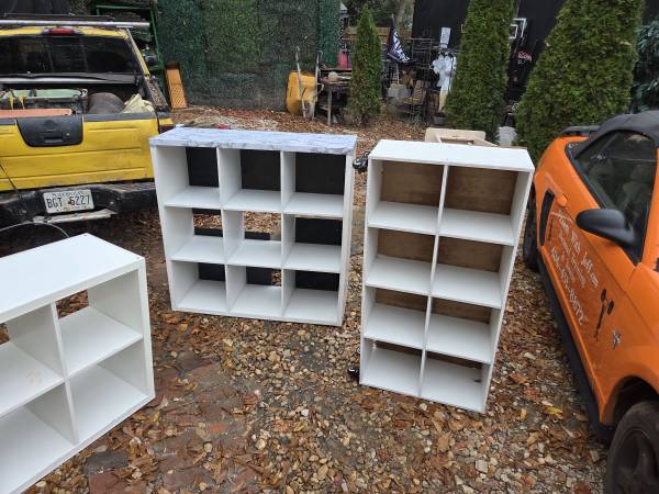 Shelves cube white 47 x 24 n 12 deep. 30 x 16 x 30. $35 ea. 44 x 15 n 44 inch. $45. Also have blk