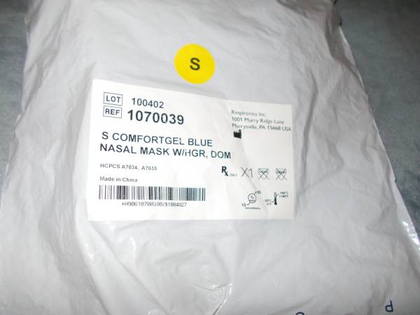 Phillips Respironics S Comfortgel Blue Nasal Mask with HGR, DOM. HCPCS A7034, A7035. For any more information just call days and early evens only please....thanks. Can be shipped.
