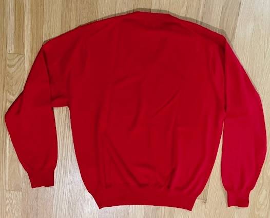This is a man's UGA sweater. It is made by Peter Millar, made of 100% Merino wool, size medium, V-neck, red in color and of course, has the Georgia "G" embroidered on the front left side.