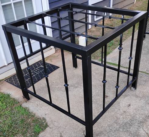 We're selling our aesthetically pleasing custom built designer HVAC SHIELD'S SECURITY CAGE built with wrought iron and steel . The dimensions on this cage is 40 width x 40 depth x 38 height. The height can be modified depending on whether it's going in dirt or concrete. We can also make custom cages to fit your specific needs. Our cages can be installed in dirt with concrete poured in, or bolted to concrete pad/porch. I offer Free Delivery and Installation.