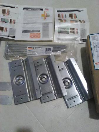 Simpson Strong-Tie BVLZ brick veneer ledger connectors for adding a deck to an existing house with brick veneer exterior. Attaches the wood ledger to the framing through the veneer. 3 connector included. Cost $160 at Home Depot.