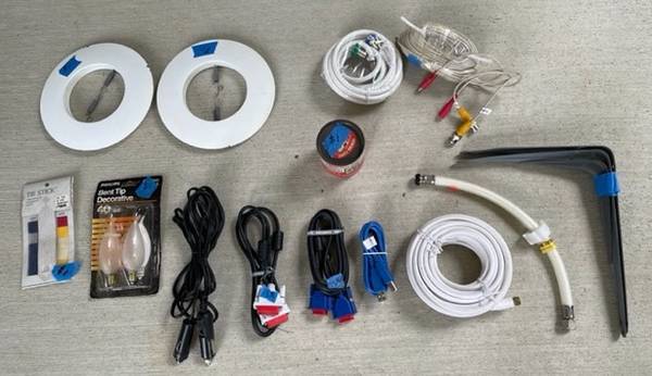 Items include car products, garden pots, switch and outlet covers, brass hinges, paint samples, metal rods, sprayer bottles, screws, pressure washer sprayer, rolls of paper, safety glasses, plumbing aides, shelf brackets, office supplies and more!