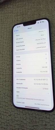 Unlocked - iPhone 14 Plus 128GB (Light Blue) - Very good Condition UNLOCKED - works with At&t, T-Mobile, Verizon, Cricket, metro pcs, straight talk and other gsm carriers clean imei & no...