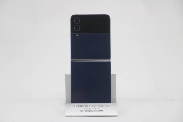 Available in store is a Samsung Galaxy Z Flip4 in Navy Blue that has 256GB of storage. The device is in EXCELLENT condition, having no major signs of wear, and all functions have been tested to ensure a full functionality. The phone has a GUARANTEED clean IMEI and is FACTORY UNLOCKED, which allows it to be used with any carrier in the world. the device comes with a genuine charging cable and is ready to be purchased!