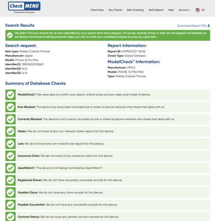 CheckMend searches data from numerous legitimate US sources to provide mobile device history reports, letting you buy with confidence!