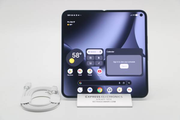 Available in store is a Google Pixel 10 Pro Fold in Moonstone that has 256GB of storage and is covered under Google WARRANTY until October 9th, 2026. The unit is in NEW Condition, having no signs of wear overall and comes with the original OPENED BOX. The device has a GUARANTEED clean IMEI and is FACTORY UNLOCKED, which allows it to be used with any worldwide carrier. The phone comes with a genuine charging cable and is ready to be purchased!