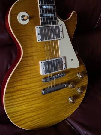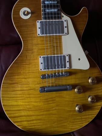 This is an amazing guitar. 2018 Gibson Custom Shop R9 in Honey Lemon Fade VOS. Excellent condition. Comes w cert of authenticity, medallion, all tags and original case. Also comes w Gibson USA case as well. Health issues force the sale, or I would never part with this guitar. Top has a bit of everything... mineral streaks, grain and nice flame. Carmalita neck profile is sublime, measuring .87-.97 with soft shoulders, super comfortable and not as full as previous R9 models. The Custom Bucker pickups match the guitar perfectly.