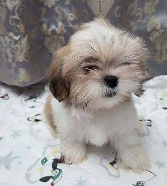 These 9-week-old Shih Tzu puppy available!have had their first shots and are full of energy and affection. Serious inquiries by text only. Rehoming fee applies.