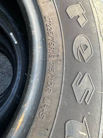 I have 4 Firestone Transforce tires like new condition. These tires are all matching with no plugs or patches. They have about 95% with only driven about 100 miles on them. Tire size LT225/75/16’s....
