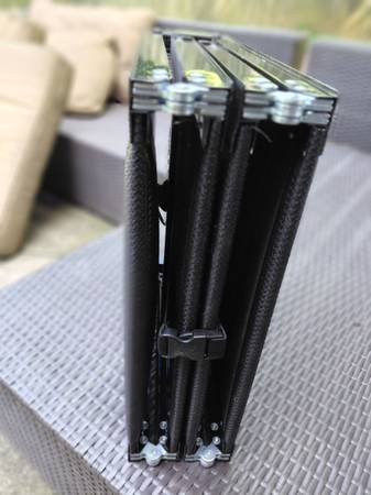 5 ft long 17 and a half inches wide and an inch thick. Folds up into the 17 and a half inch square for storage and transportation