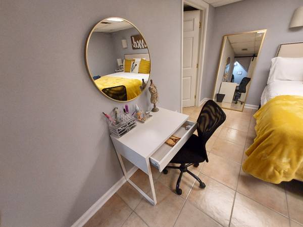 Fully Furnished One Bedroom Basement Apartment with Bonus Room that is close to everything you need. Minutes away from beautiful Senior Center, Nature Trails, and minutes from Major Highways. This hidden gem is in a sought-after location, Walkable to Restaurants, Department Stores, Grocery Store, Gym, Public Transportation and more. The apartment has its own Driveway and Private Entrance. The Master Bedroom has a King Bed, Closet, Dresser, Desk, Full Bath with storage & Smart Tv. It also has a Eat-In Kitchen & Pantry, Livingroom with Tv, Dining Area, Bonus room and a Private Laundry room with W/D combo. There is also an optional inside storage room. All Utilities (Electricity, Water, Gas, Garbage and Internet) are included. Please Note: - Price Increase depending on occupancy - No Drugs - No Smoking - Furnished or Unfurnished (please inquire). - Background and Credit Check are required.