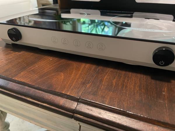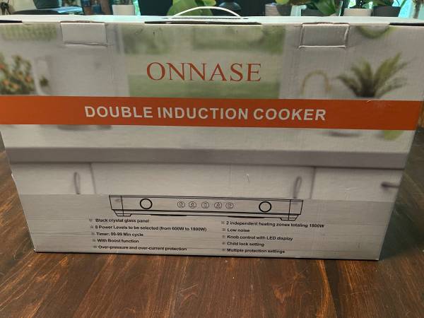 Brand new in the box Onnase 1800 watt double induction cooktop. Choose from 8 preset power/watt levels.