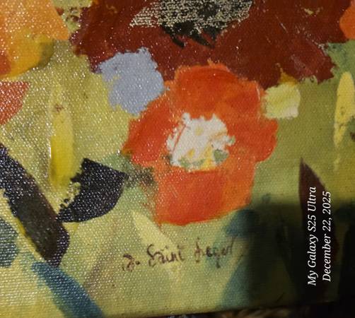Embellished giclee canvas print titled 'Folk Bouquet' in the style of Fabrice de - $175 (Decatur)