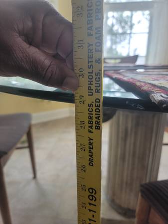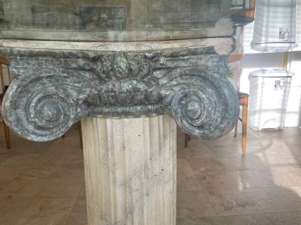4” round, tempered glass top table with ceramic, Corinthian style column pedestal. 2” 5 1/4” high. Small chip in ceramic is pictured $150 or best offer