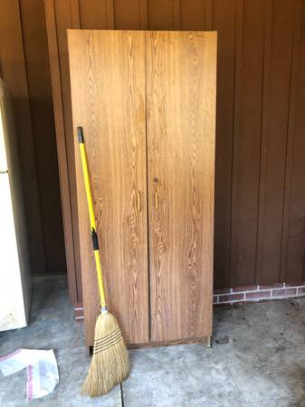 30 inches wide, 6 ft tall, 15.5 inches deep, 14 inches for cubbies inside a door. My phone number is out of state because we are here cleaning out my in-law's house. Text ONLY 314-five five six 2585. We need this gone so we'll negotiate. Just be prepared to carry it away. Cash or VENMO accepted.