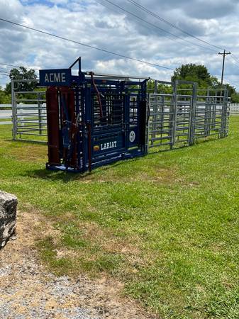 180 Degree Sweep System 20’x10’ and 20’x7’ holding pens 180 Degree Tub with spring loaded latch on tub gate. This system has 7 Bow Gates with slam latches. All 6’ tall and three pin hookup galvanized. $7350