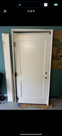 Replacing a door so we have a great quality used 2 panel Masonite door with jam and threshold.
