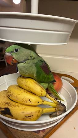 Alexendrine parakeet , sweet and tame , still being hand fed , they are great talker , looking for their forever home . Rehoming fee will apply .