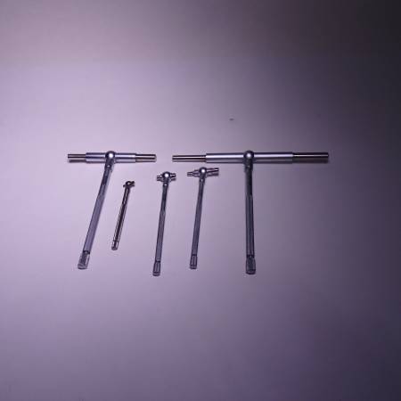 Telescoping Gage Set: 5/16 to 6", 5 Pc, Hardened Tool Steel, Satin Chrome Finish. Model number 14-120-0 missing from set (Range: 1-1/4 – 2-1/8″) . 5pcs instead of 6.
