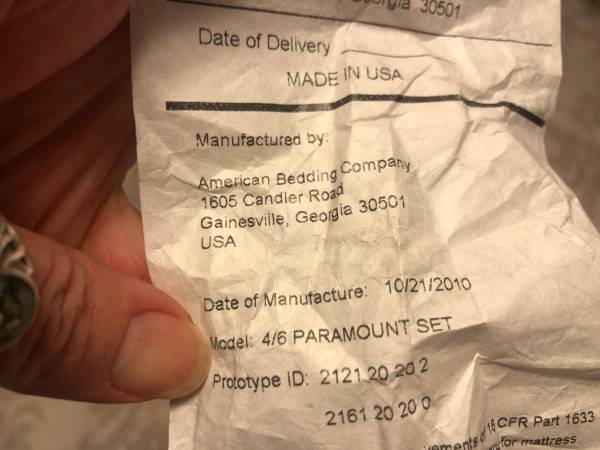 Full size mattress and box spring. Purchased in 2011 for a guest room. Slept on perhaps a dozen times. Non - smoking house.