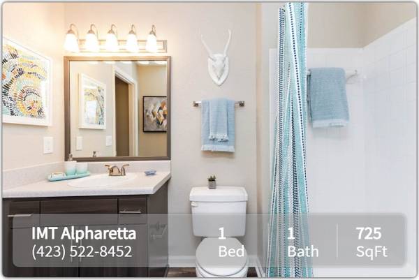 IMT Alpharetta is located within the blue award-winning Creekview Elementary, Webb Bridge Middle & Alpharetta high school districts and has close proximity to Avalon Shopping District and North Point Mall. With close proximity to MARTA, IMT Alpharetta gives residents an easy commute and all the best that the greater Alpharetta area has to offer. Lease terms are 3-12, 24.