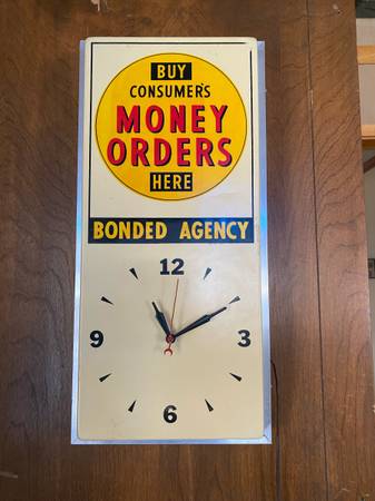 Up for sale is a vintage consumers money order clock in excellent condition that operates perfectly! $395 cash. Call 770-596-nine seven six three. No texts, no trades, no emails, and don’t need help selling. Thanks for looking!