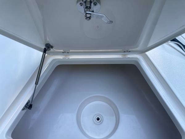 BRAND NEW COOLER under the helm leaning post (100qt). Also comes with 2 additional swivel seats with factory cushions that can be mounted aft or on the bow. 2 large livewells (the one in the rear is huge). Raw water washdown, etc, etc. This boat really has everything I wanted.