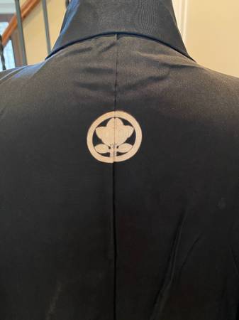 Vintage 1920’s Authentic Japanese men's kuromontsuki kimono. It has 5 kamon (family crests), and the pattern of the crest is maru ni tachibana