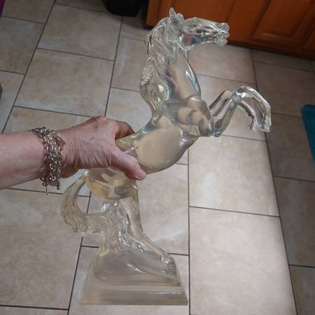 Huge lucite stallion horse, eagle, rabbit, orange dragon, swans, rocking horse, colorful horse on marble base all for $100