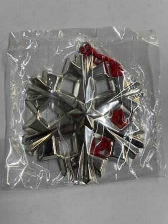 Towle Silversmiths Silverplated Snowflake Christmas Ornament Brand: Towle Silverplated Ornament Classic Snowflake Christmas Ornament Satin Red Ribbon attached Box Included Unopened, Sealed In Great...