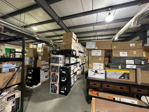 Ryobi, Husky , Dewalt shelving and lawn mowers