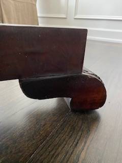leaf has a scratch, which was there when I purchased it. Its covered when the felt topper and table cloth are on for dining use