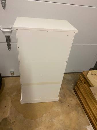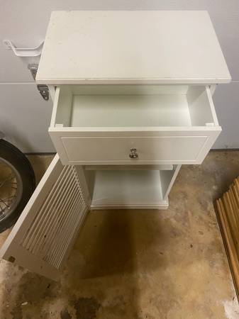 I have a freestanding white bathroom storage cabinet with one drawer and one adjustable shelf. Cash with local pickup only, call or text please. Thanks