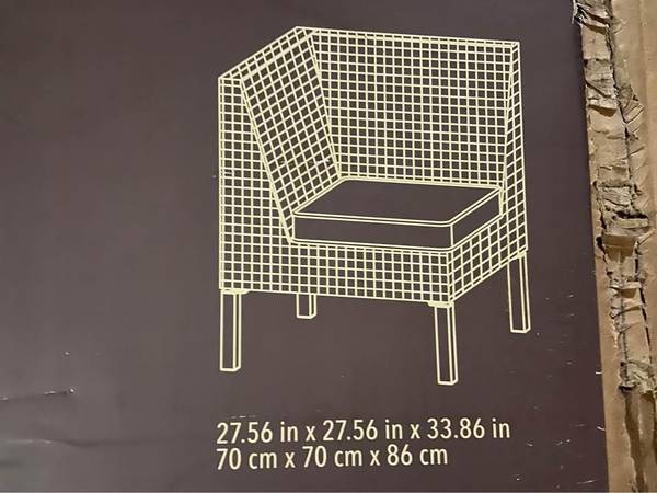 Brand new, allen + roth Chesterbrook Wicker Black Metal Frame Stationary Dining Corner Chair with Light Blue Cushioned Seat