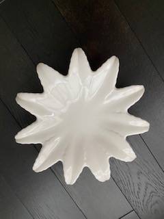 decorative white ceramic flower dish used only for a decorative piece gloss white perfect condition approx 13.5" diameter LOCAL sale only CASH only