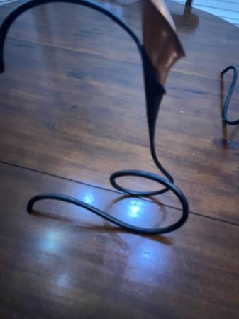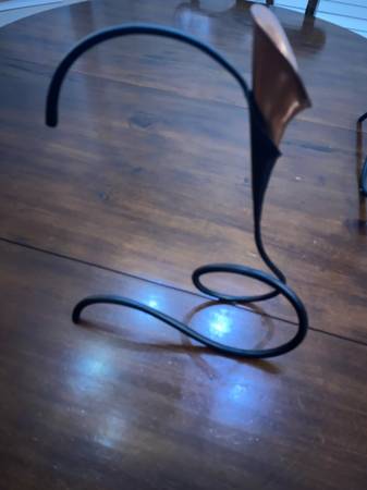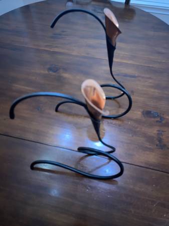 Black metal stand with a unique design. 2 candle holders Cost=$50