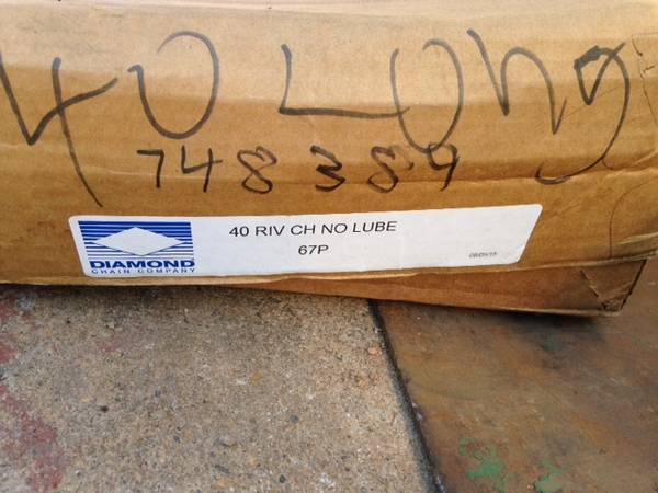 NEW/UNUSED DIAMOND ROLLER CHAIN, CHAIN NUMBER 40, 1 STRAND, 1/2" PITCH, CONSTRUCTION RIVETED, MATERIAL STEEL, 40 FT LENGTH, SOLD AS IS, FOB DAWSONVILLE, GA