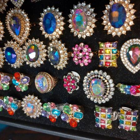 100 bling rings but not the ring display case for $150 GORGEOUS COLOR SPARKLE BLING