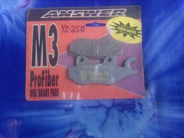 THIS IS A BRAND NEW(NOS) ANSWER PROFIBER M3 FRONT DISC BRAKE PAD SET. THEY ARE ASBESTOS FREE, CARBON GRAPHITE/ KEVLAR BASED AND ARE SPECIFICALLY DESIGNED TO MEET THE RIGOROUS ELEMENTS OF OFF-ROAD RACING. MANUFACTURED FROM THE HIGHEST QUALITY MATERIALS AVAILABLE, MAKING THEM THE FINEST BRAKE PADS MADE! THESE ANSWER PROFIBER BRAKE PADS RUN UP TO 100° COOLER THAN OTHER BRAKE PADS. THEY HAVE HIGHER FRICTION WITH EXCELLENT FADE RESISTANCE AND ZERO ROTOR DAMAGE.