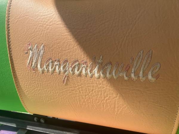 Totally custom Air brush painted Margaritaville themed 48V electric golf cart with custom upholstery front and rear seats on a lifted Yamaha body golf cart extended roof fold down rear seats for flat bed use, folding tinted windshield New RoyPow Lithium 51.2V 105 ah battery with charger aftermarket wheel and tires