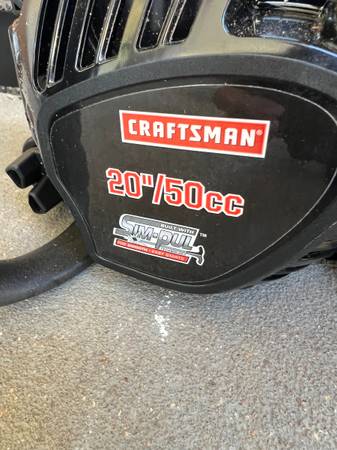 20 inch Craftsman chainsaw. 50cc. Like new condition, but starts only 1 time. Now, it no longer starts. Price is $75. Please call if interested.