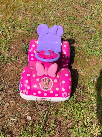 3 power wheels all in good working order with chargers. Minnie mouse small toddler size and side by side perfect for 4 -8 year old practically new maybe 3-4 rides each. Older 4 wheeler very fast (considering) with high gear lockout. Selling all 3 together.