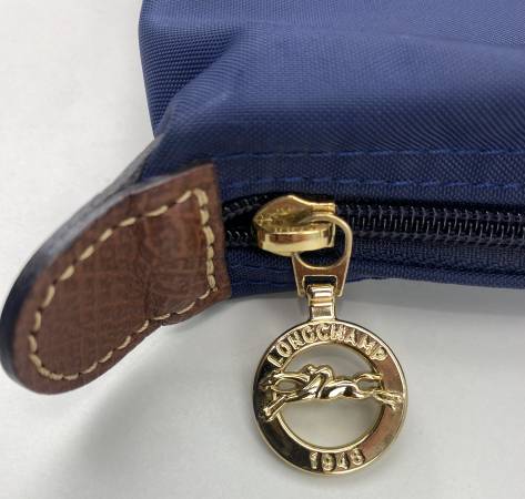 Longchamp Purse Handbag Tote Le Pliage Small Navy Blue Nylon with Leather Trim