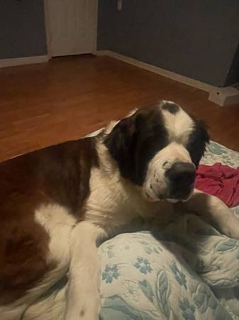 He’s a pure bred Saint Bernard and he’s 3 years old will be 4 in October, he’s friendly, crate trained, house broken, only been around women but is friendly around men he just has to get to know the...
