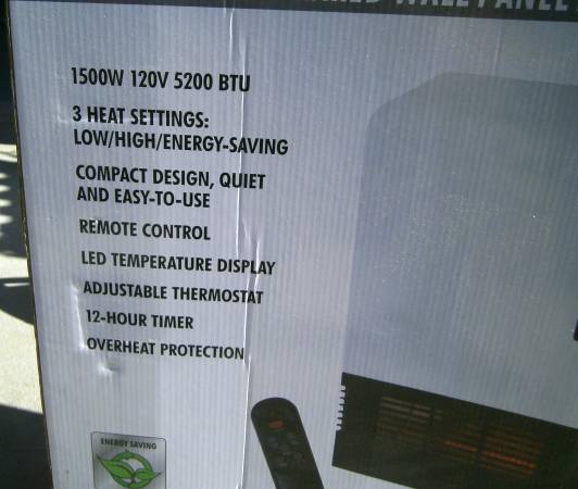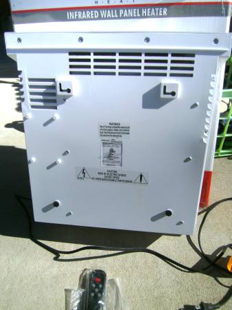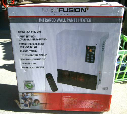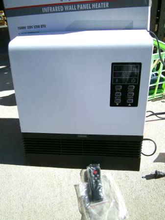 Excellent "Like New" condition ProFusion electric Infrared Wall Mount Heater w/ remote, 1500 watts with 5200 BTU.... 3 heat settings.... LED Temperature Display.... Adjustable Thermostat.... 12 Hour Timer... & Overheat protection.... Approx 17" wide x 18" tall.... Great for an office, small workshop or garage, living room, enclosed patio area, etc.... $75 cash - call or text show contact info